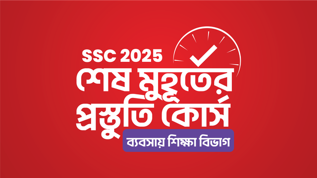 **SSC 2025 ব্যবসায় শিক্ষা বিভাগ শেষ মুহূর্তের প্রস্তুতি কোর্স:** এই কোর্সে ৮টি বিষয় এবং ৫০+ লাইভ ক্লাস অন্তর্ভুক্ত রয়েছে। এটি বিশেষভাবে ব্যবসায় শিক্ষা বিভাগের শিক্ষার্থীদের জন্য প্রস্তুত করা হয়েছে। ক্লাসগুলো ফেসবুক গ্রুপে পরিচালিত হবে, এবং প্রতিটি বিষয়বস্তু নিয়ে গভীর আলোচনা হবে। অতিরিক্তভাবে, বিগত বছরের বোর্ড পরীক্ষার প্রশ্নের বিশ্লেষণ, CQ এবং MCQ প্রশ্ন ও সাজেশন প্রদান করা হবে।